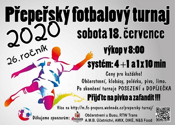 V sobotu 24. července 2020 se uskutečnil 27. ročník Přepeřského fotbalového turnaje v malé kopané na tradičním místě u přepeřské hasičárny.